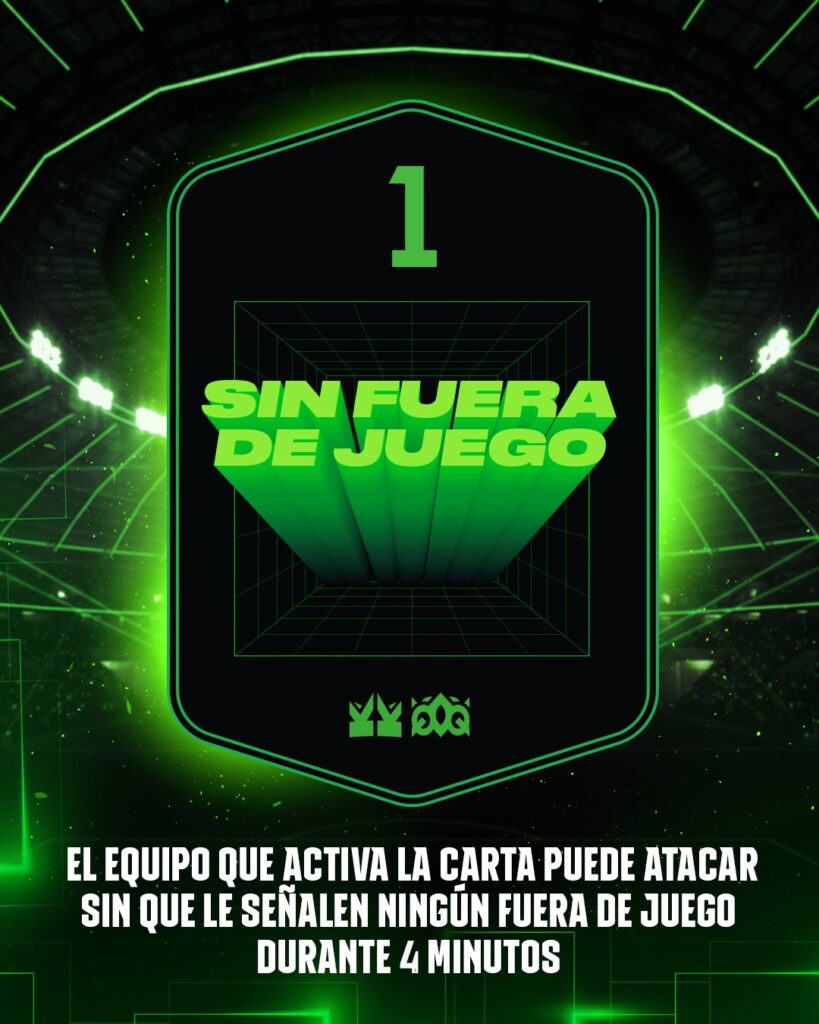 Imagina un ataque sin cadenas, con los delanteros lanzados como misiles sin que nadie pueda levantar la bandera. Durante 4 minutos, el equipo que active esta carta podrá atacar sin que le señalen ningún fuera de juego.