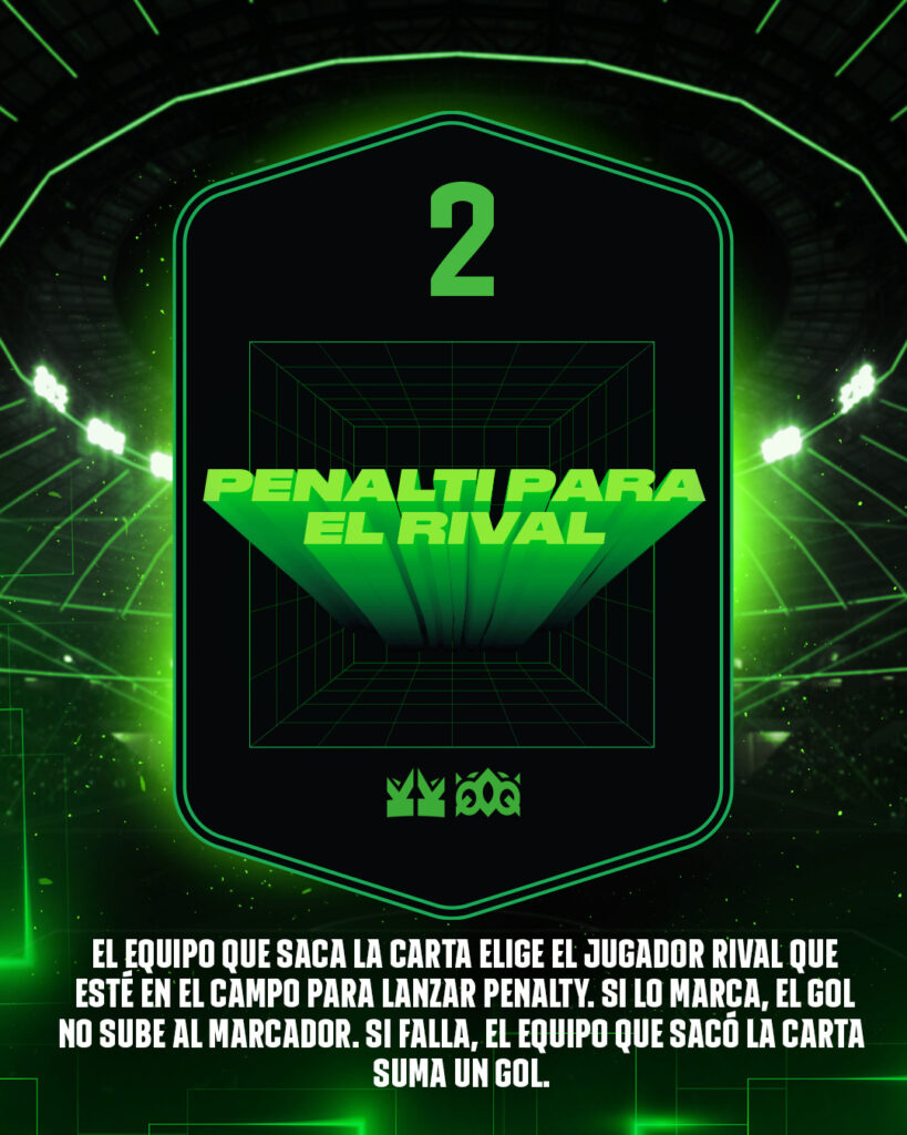 Si marca, el gol no sube al marcador. Pero si falla… ¡el equipo que jugó la carta suma un gol automático! Una mezcla de presión, nervios y revancha. Usarla bien puede destrozar la moral del rival.